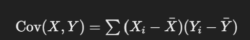 분자 부분은 두 변수 간의 공분산을 계산합니다:
