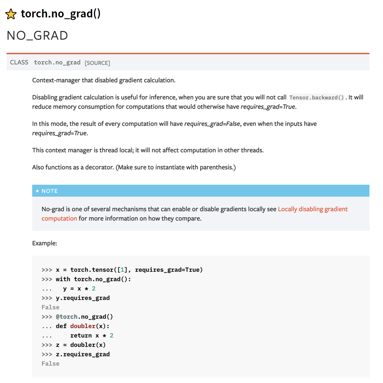torch.no_grad() 는 역전파 시 필요한 gradient 계산 context를 비활성화 해주는 역할을 합니다. 예측(추론;Inference) 혹은 Validation(검증)을 할 때는 gradient 계산을 하지 않습니다. 그래서 이 함수를 사용해 줌으로써 PyTorch 의 autograd engine( gradient 를 계산해주는 context ) 를 비활성화 시켜서 더 이상 gradient 를 트래킹(추적)하지 않게 됩니다. 따라서 필요한 메모리가 줄어들고 연산속도가 증가하게 됩니다.