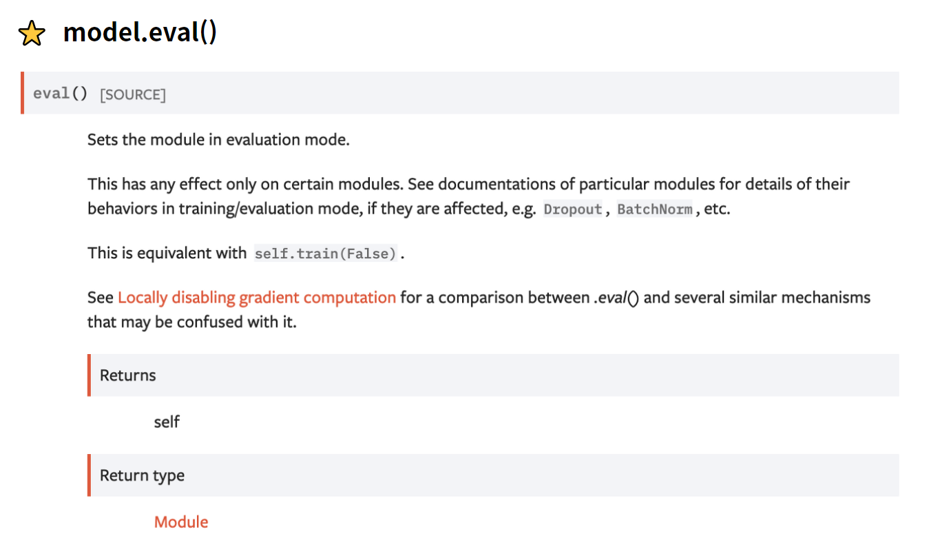 위 그림은 pytorch 공식 문서에서 model.eval() 함수의 설명을 발췌한 것 입니다.
