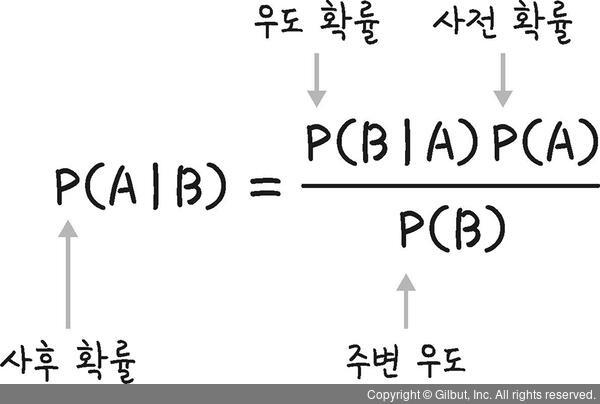 - 사전확률 P(A) 과 우도확률 P(B|A) 를 안다면, 사후 확률 P(A|B) 를 알 수 있다.