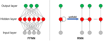 RNN(Recurrent Neural Network)과 FFNN(Feed-Forward Neural Network)은 구조와 학습 방식에서 몇 가지 차이점이 있습니다. 주요 차이점에 대해 설명하겠습니다.