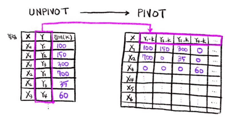 ✔️ 예시 (서브쿼리로 PIVOT 전 단계의 테이블 만들어주기)