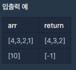 - 조건2 : 배열의 길이가 1초과일 경우 [-1]을 리턴
